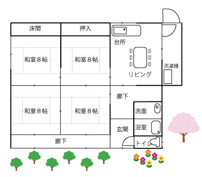 | 部屋 | 8帖×4室、キッチン、浴室 |