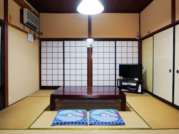 お部屋は、「鯵の間」「イカの間」「牡蠣の間」「なまこの間」和室8帖4室 プラス 台所(約10帖)です。